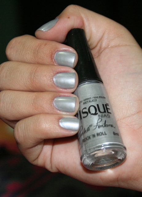 Carregados de um estilo retrô, anos 80, os esmaltes vem em uma variação de cores, que vai das mais marcantes, como o roxo até os tradicionais prata e dourado. E, como vocês já poderiam imaginar, optei pelo básico - prata - e não me arrependi. Ele é lindo!Da coleção de Isabeli Fontana, o Rock'n Rio, da Risque é um prata que ao mesmo tempo é chick e extrovertido. Ele é retrô e moderno. Enfim, é um esmalte que, com certeza, entrou para a lista dos meus preferidos. A aplicação, para as mais perfeccionistas, pode dar um pouco de trabalho, porque as linhas das pinceladas ficam bem marcadas. Mas para as práticas vai super bem, principalmente com a secagem rápida, afinal com apenas duas camadas, a cobertura fica perfeita!